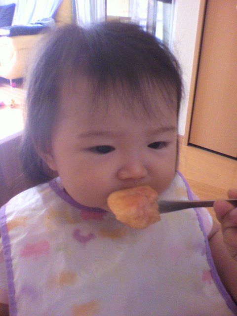 離乳食 すこしずつ 形あるものを 残しつつ やってますが まだ まだかな