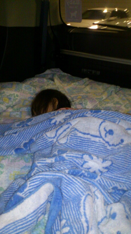 なんとか 空港まで 寝ずに 頑張ってもらって 到着。 張り切って スーツケースを押したり 飛行機を見てみたり