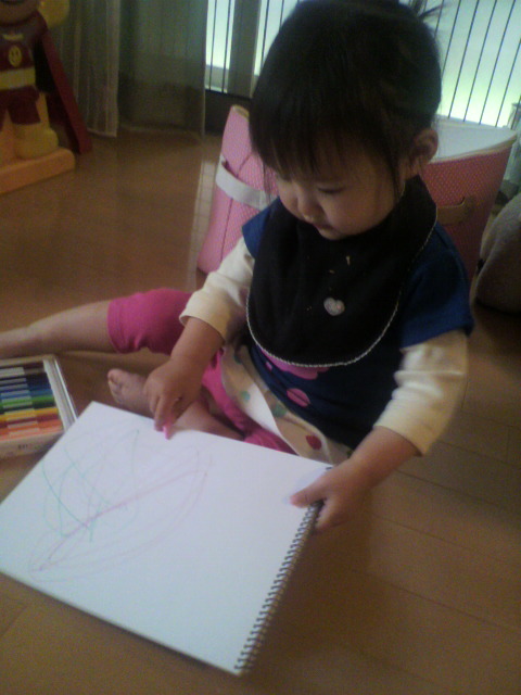 mamaのリクエストで 太鼓が ついてて 音の出る 本を 買ってきてくれました。