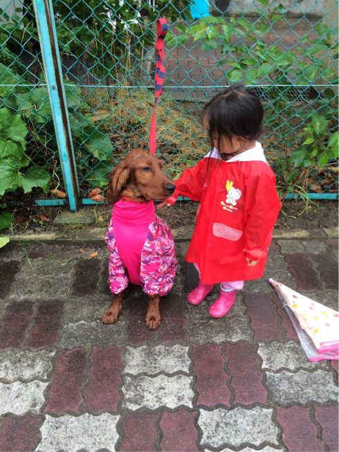 子供2人に ジーナ にカッパを着せるだけで 一苦労