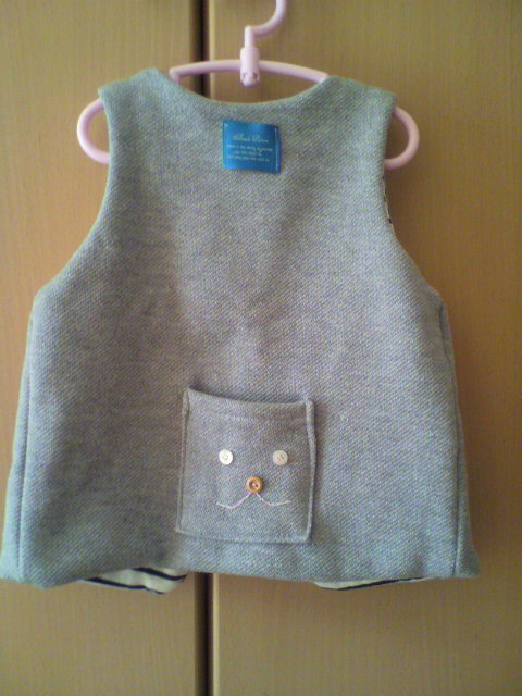 リバーシブルで ネズミ色がわの 後ろに ポケット
