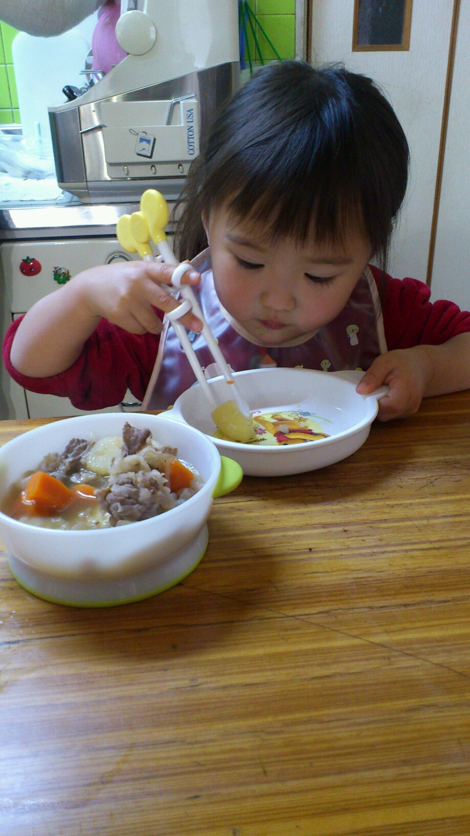 自分のお箸が嬉しいみたいで♪