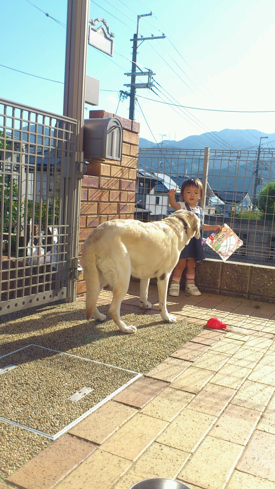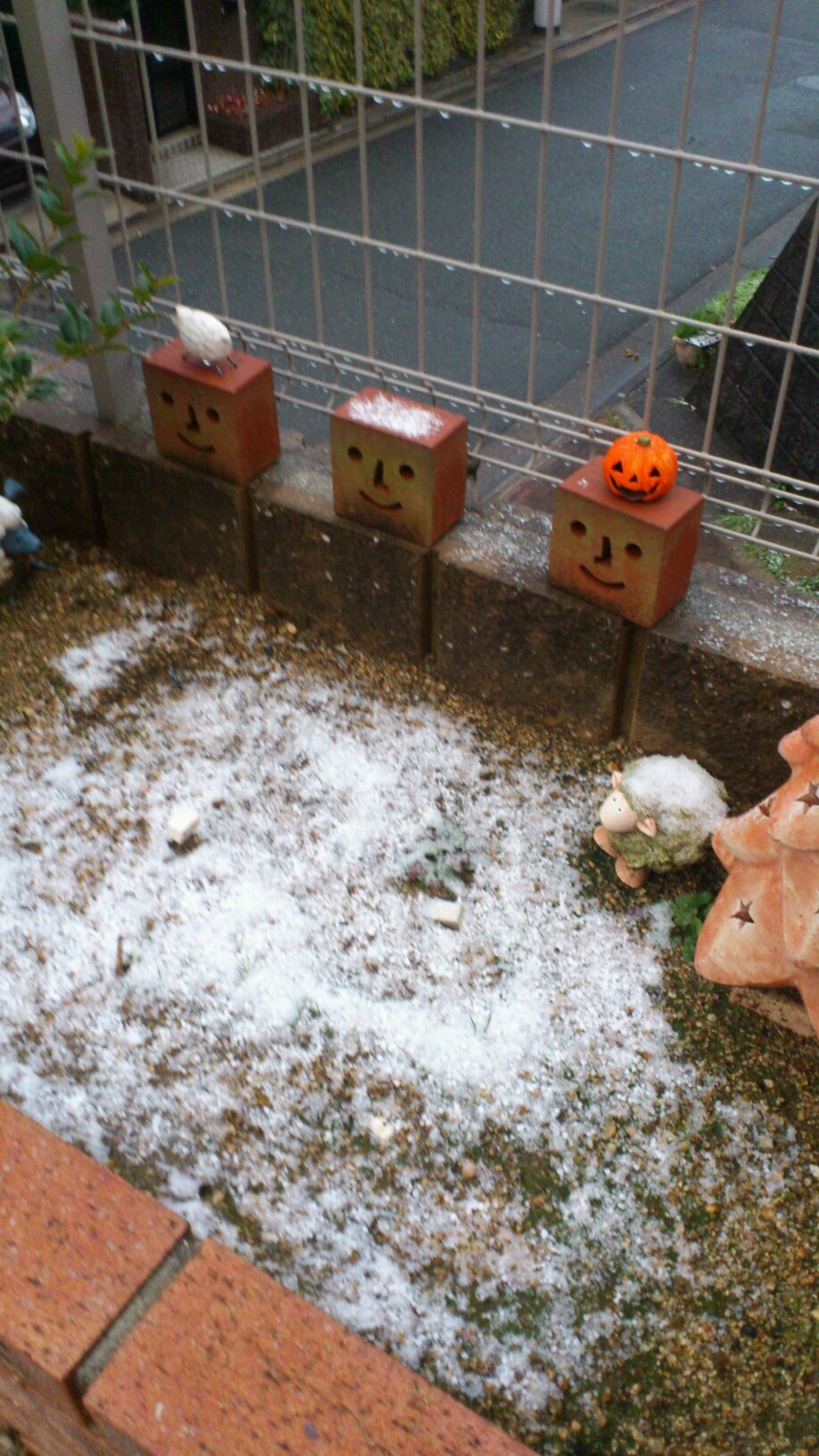 お庭で、すでに 靴で 水溜り in してました。