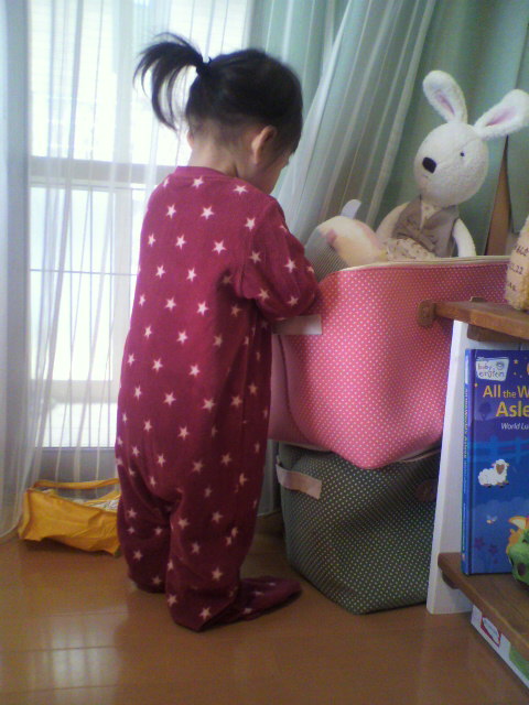 オムツ ポイしてきてー というと 自分のオムツを持って ゴミ箱に捨てにいきます。