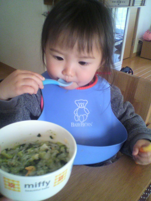 一人で スプーンを持って お口に運べます。(すくうのは まだまだ・・)