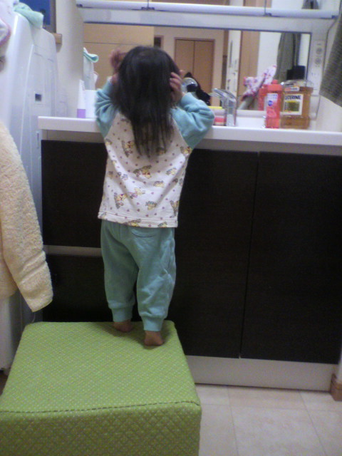 ちゃっぷちゃっぷ いくよー と言うと また洗面所に向かいます。