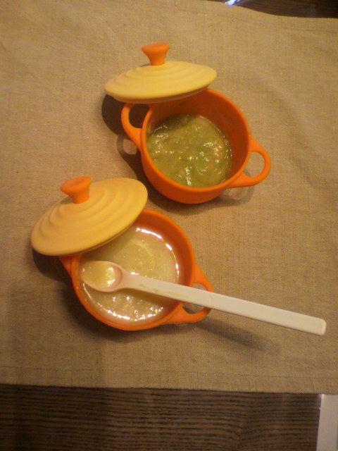 写真は サツマイモとりんごの炊いたやつに 豆乳でのばしたもの