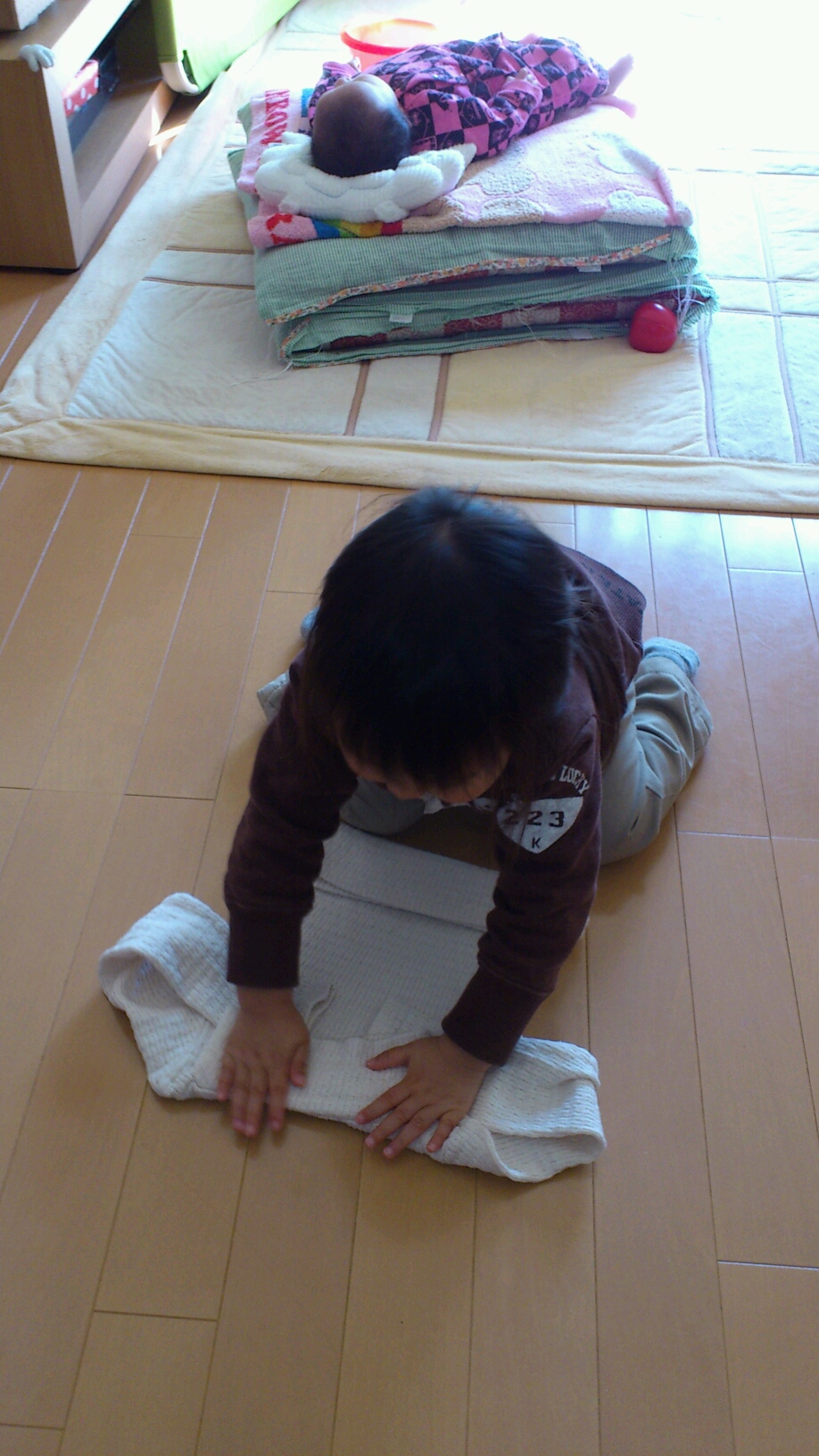 いつもなら ジーンズかスパッツ履かせてるので、大した事もなく立ち上がって 『anちゃん、ちゅよい!!!』