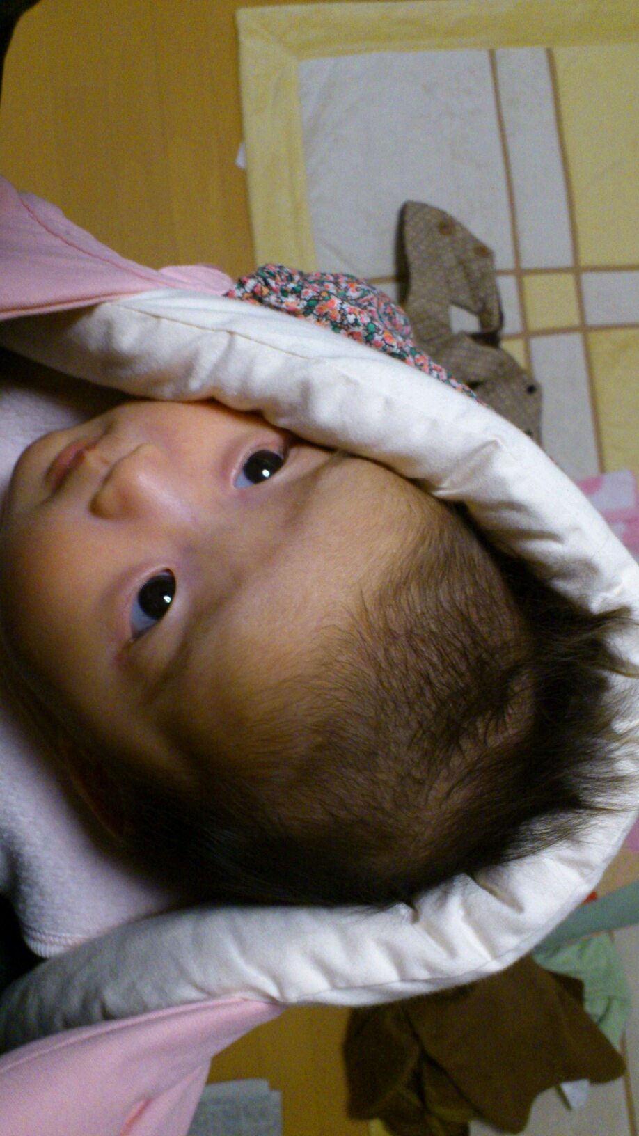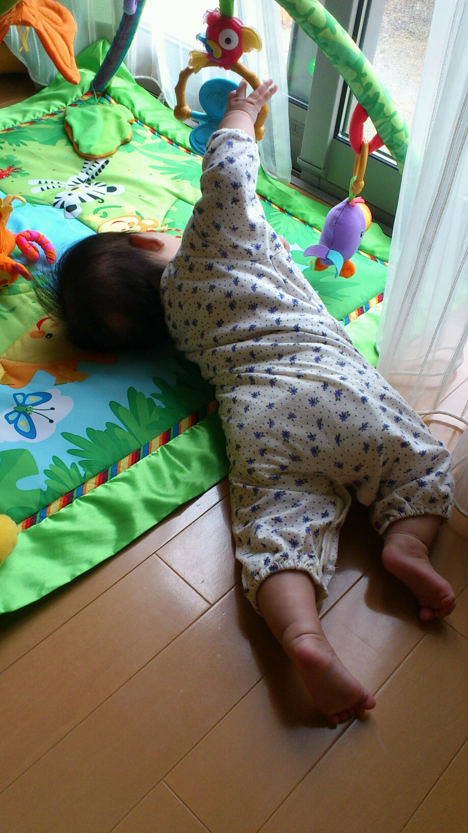 なんだか すでに寝返りしそうな勢い で 横向きまで行きます。