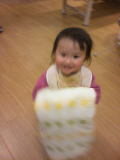 さすがに 今日は 抱っこだよって言うと ちゃんと両手を 出していました。