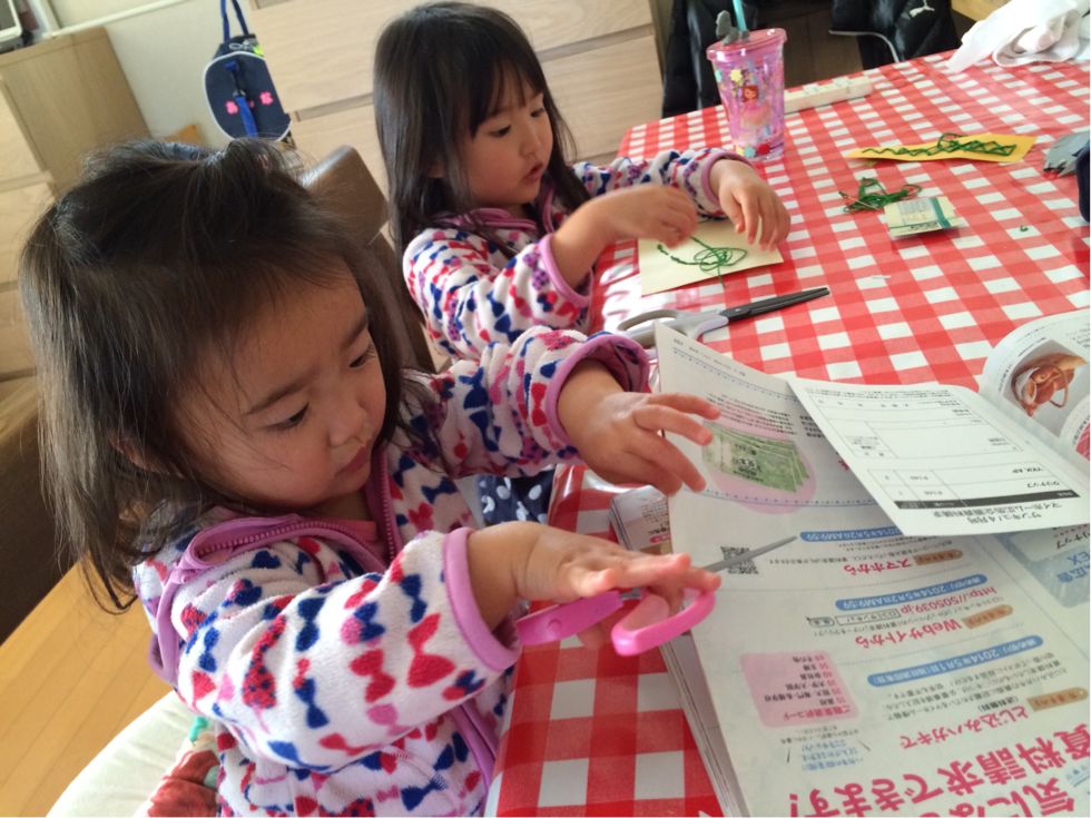 まだ 手が小さいので すこしやりにくそうでしたが とにかく切る事に 集中