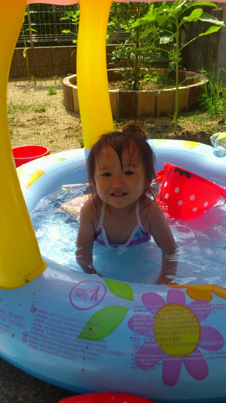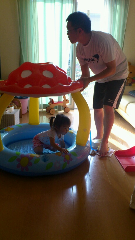 今朝は プールを 膨らましてもらいました。