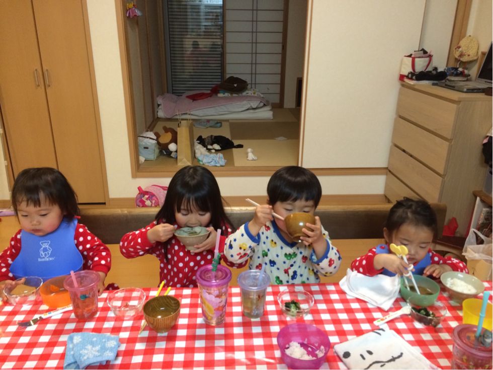 キノコの味噌汁と キュウリとワカメの酢の物 たーくさん食べてくれました。