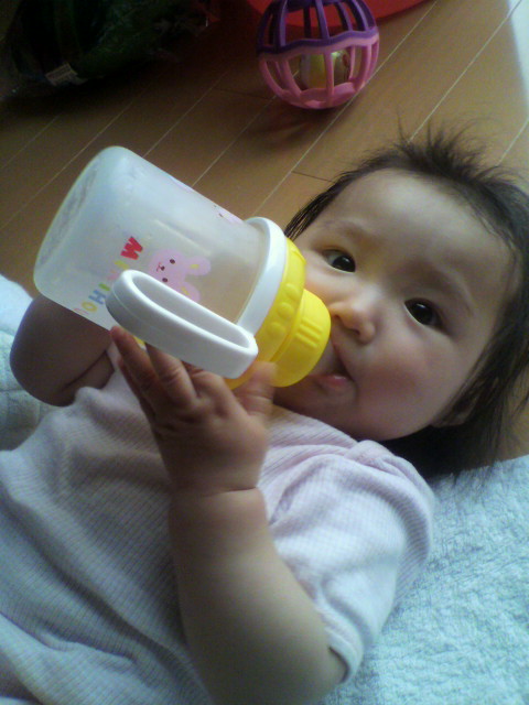 マグマグでは 寝転んでると 自分で好きな量だけ 飲めるようになりました。