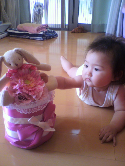 お祝いに 頂いていたオムツケーキを 解体・・・。