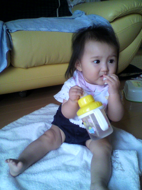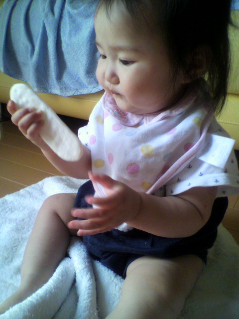 自分で 持ってるものは お口に入れるんだな・・・。