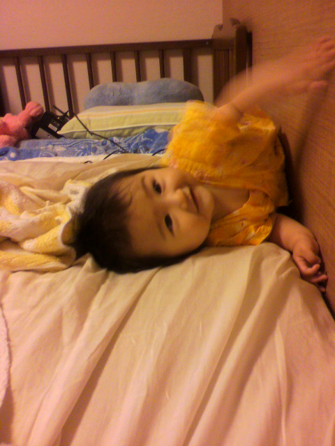 昨日は 壁に向かって 何度も寝返りを試みて・・・