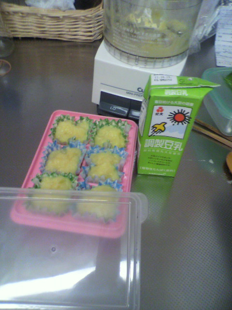 写真は サツマイモとりんごの炊いたやつに 豆乳でのばしたもの