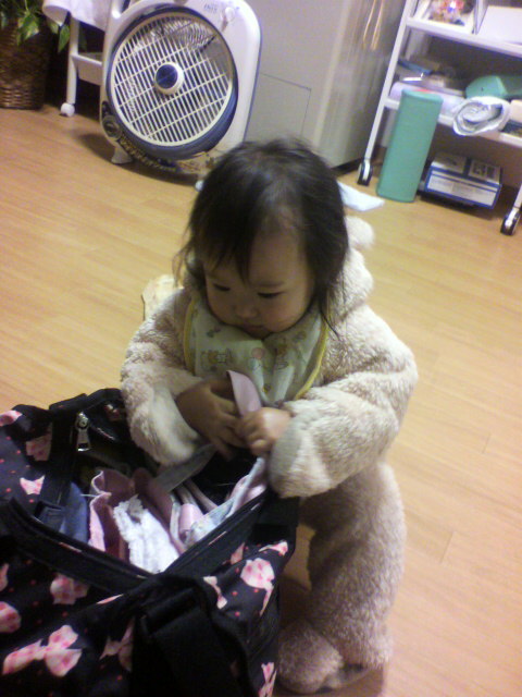 まず mamaの カバンに 体当たりで
