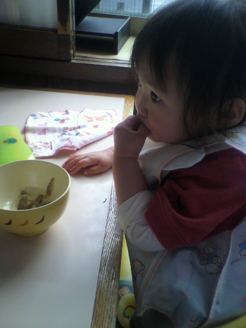 Annaは papaの肉きんぴらうどんの きんぴらを食べて~