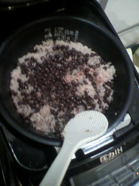 炊飯器で 炊くと お赤飯みたいな 赤色に 変わります。