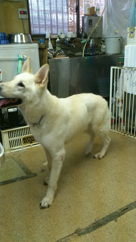 白シェパードのロジャーくんが まっすぐ写っていれば成功ですが・・・