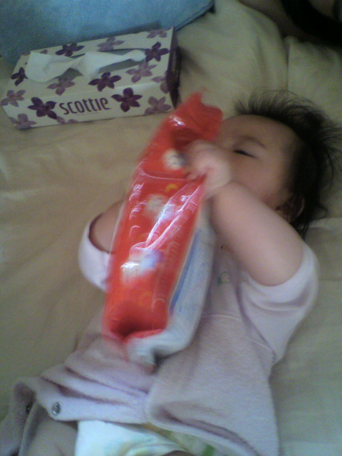 今朝は 自分の体の 三分の一くらいの 大きさの おしりふきを