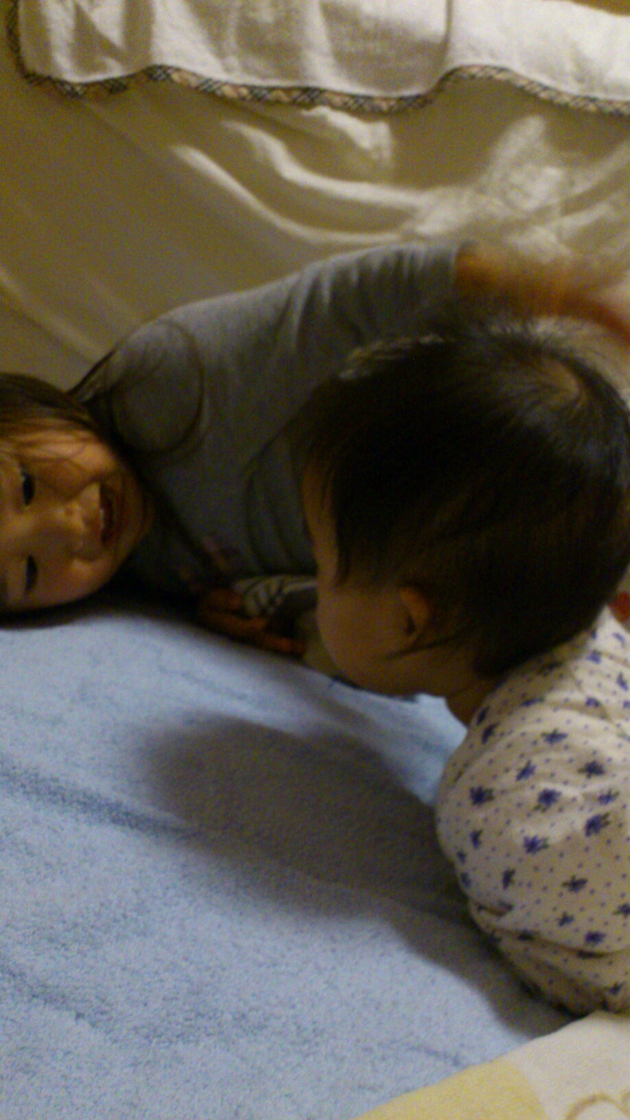 寝る前に 布団でコロコロしていた時に、ようやく布団をつかみながらも