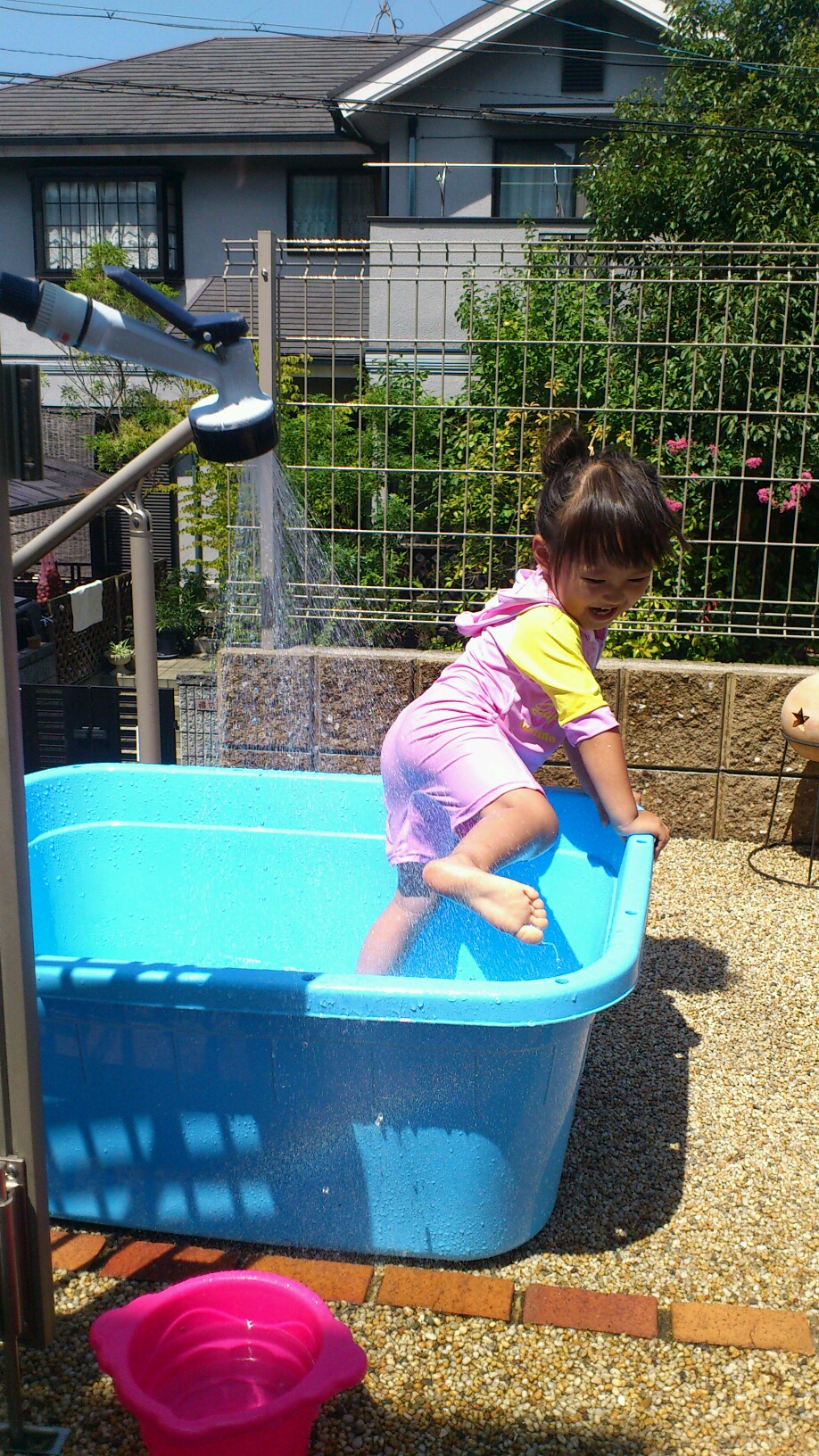 昨日 一昨日と大きなプールだったけど…桶プールでも楽しんでます。