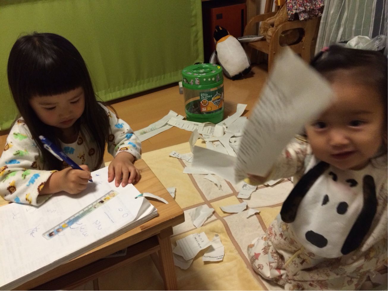 隣は、ビリビリ〜ってやるのが楽しくて 書いた端から ちぎってます