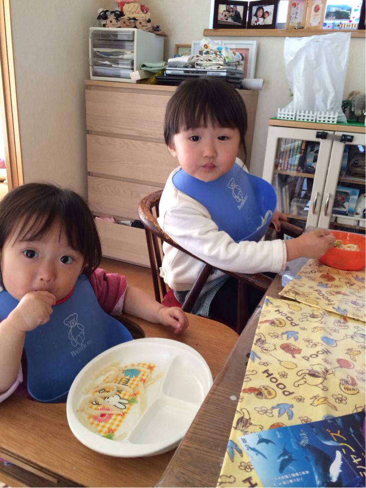 だんだん、食べるのも早くなってくるので 小さめに切って フォークを持たせたら ちまちま たべてます