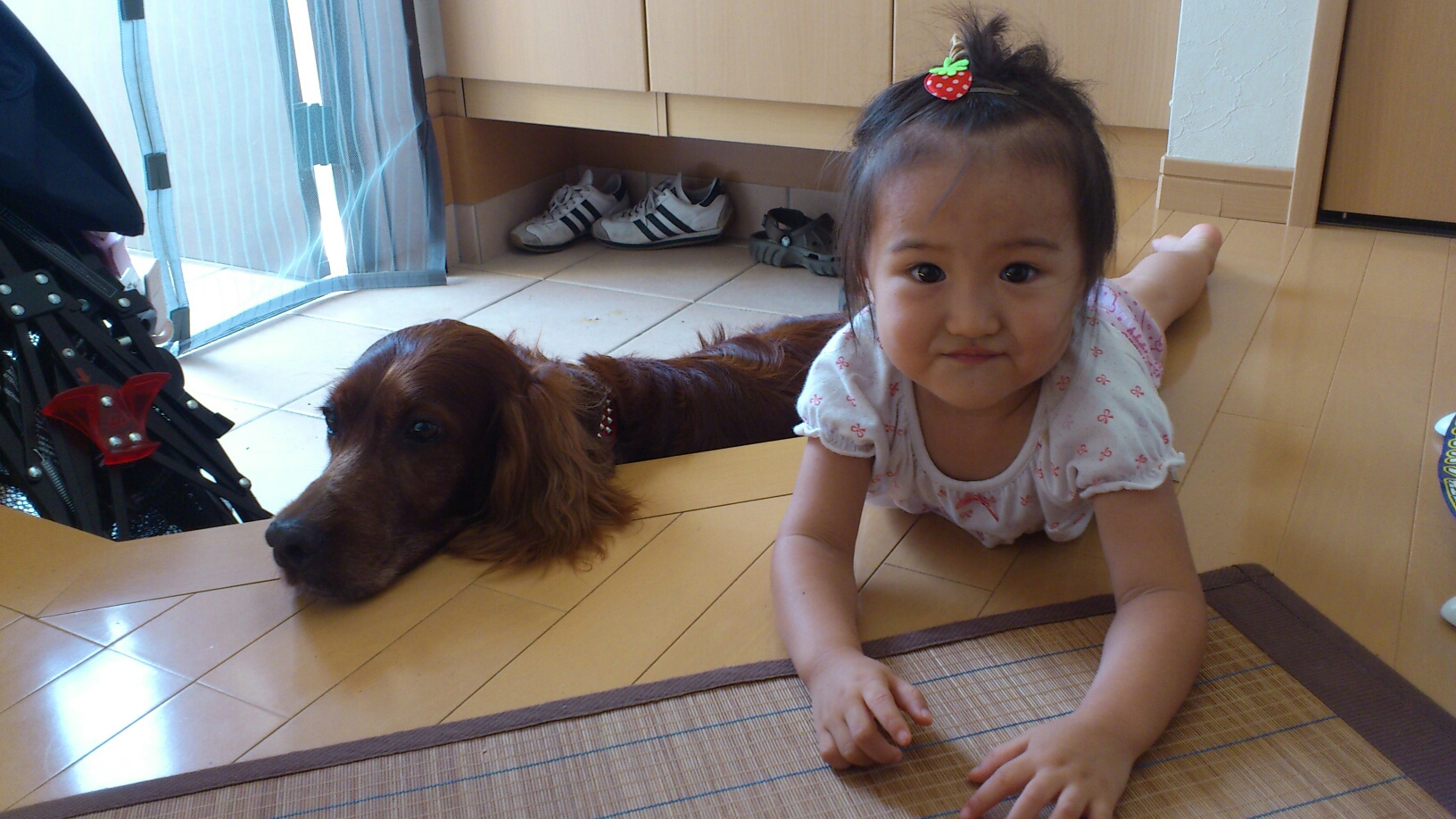 7ヶ月児をベビーカーに お兄ちゃんの手をひいて、連れていってくれました。