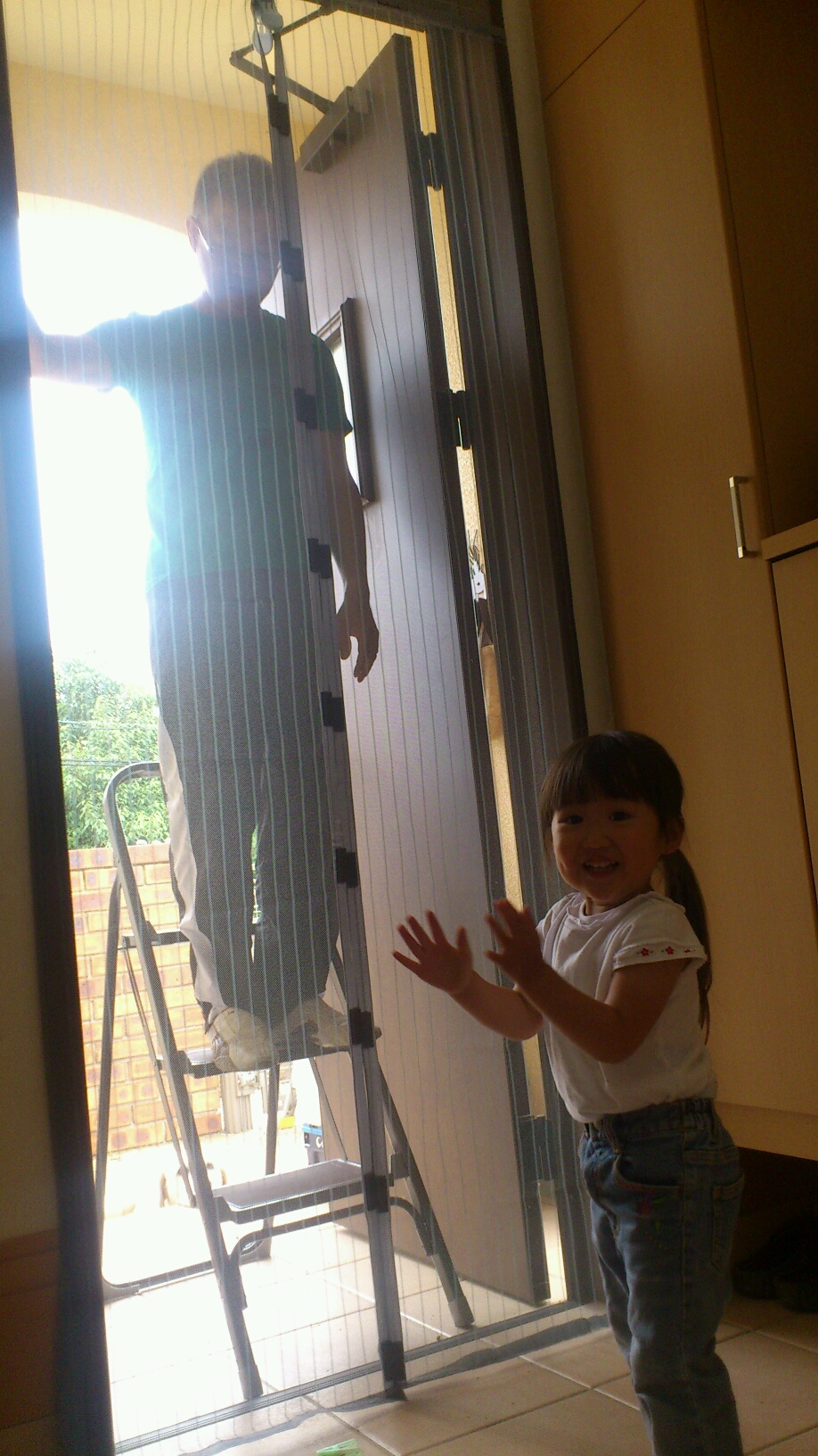 まずは、玄関に網戸張ってもらって~磁石で開閉します!
