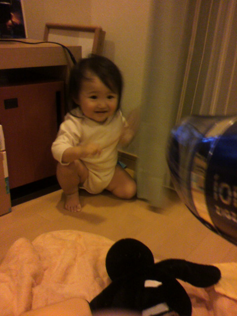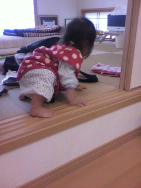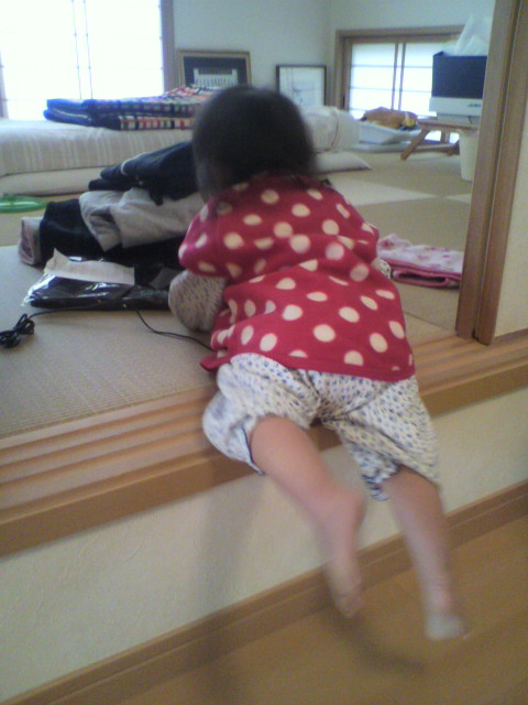 ハイハイと よちよち歩きの配分が 半々ほどに なってきました。