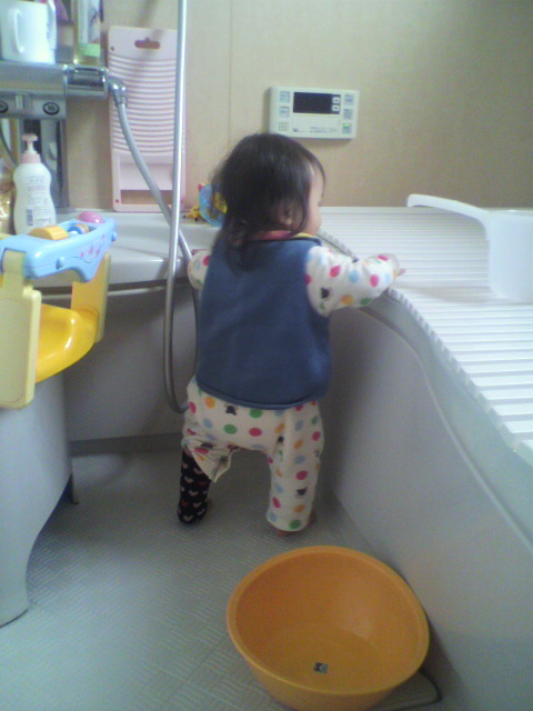 台所にきたり また テレビの前で 上ってみたり