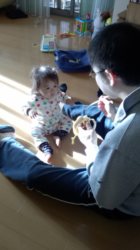 寝転んでるpapaに よじ登っていったり めがねを 狙っていたり・・・