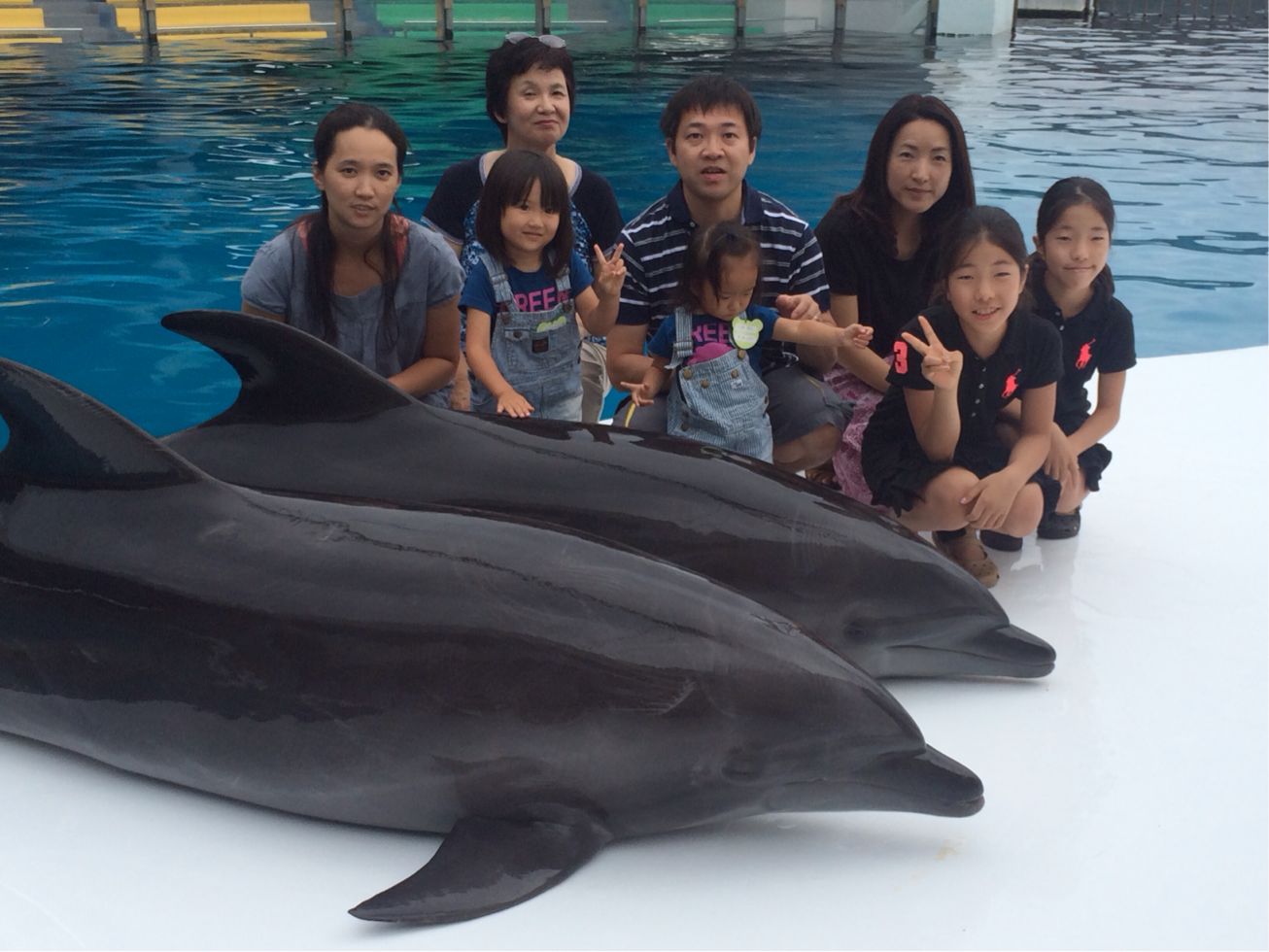 イルカと写真撮影の順番待ち