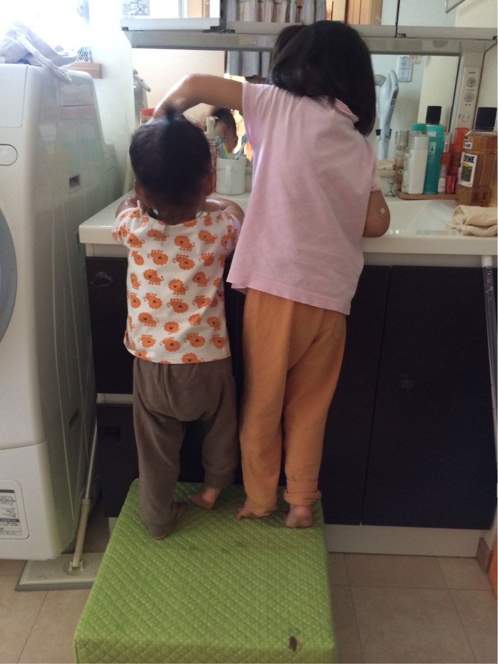 双子姉妹も くるっとまわすのも